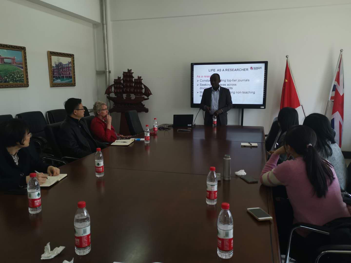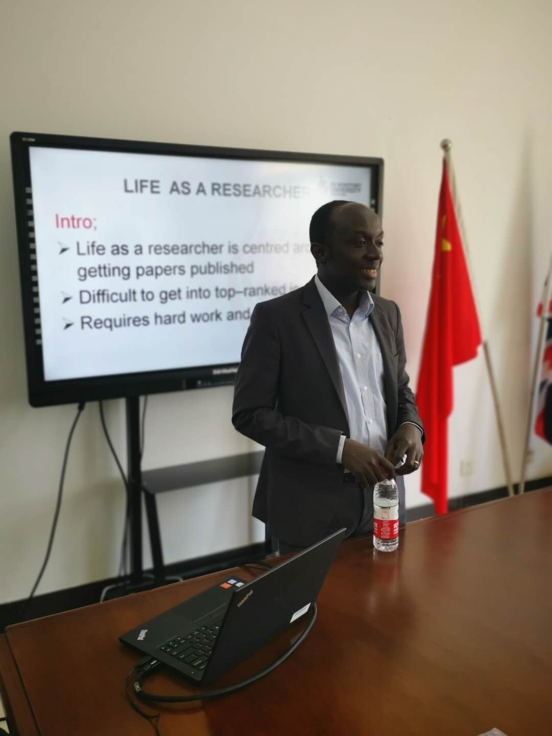 Danso副教授就个人的科研经历进行了座谈,他表示学术研究虽然很艰苦,但却是值得为之付出的事业,希望与中方教师有机会进行科研合作。