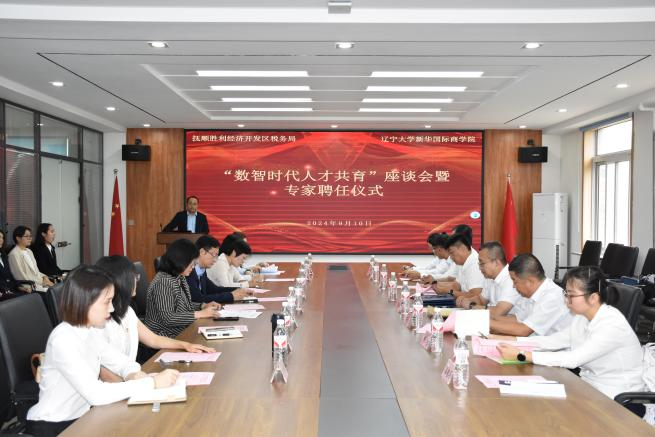 9月10日上午,国家税务总局抚顺胜利经济开发区税务局一行到bevictor伟德官网调研并召开“数智时代人才共育”座谈研讨会。国家税务总局抚顺胜利经济开发区税务局党委书记、局长罗成伟,副局长胡静涛、刘明等一行8人,公司党委书记姜蕾、党委副书记兼副经理王斌、副经理王晓辉,部分教师及员工代表共计40余人参加了座谈。座谈会由王斌副书记主持。