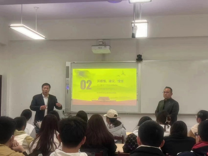 在主题班会上,学院领导、学业导师、班主任、辅导员和员工共同探讨如何提升政治素养,坚定理想信念,引领同学们在党的二十大报告中领悟青年的初心与使命、责任与担当,以健康向上的心态、一往无前的姿态和砥砺奋进的状态投入新学期老员工活,以青春之奋斗创出彩之青春。此外,各位老师还根据自己的职业背景和人生经验,结合学院特色和专业特点,为员工解答了成长困惑、就业升学、专业发展等方面问题。毕业年级班主任、辅导员向同学们介绍了就业政策、市场环境,鼓励大家积极进取,准确定位,科学规划,为自己的未来打下坚实的基础。2021级“创新国际人才培养计划”指导教师分别与负责的员工深入交流,从国家发展、学业提升、自我完善等方面带给同学们思想启迪。