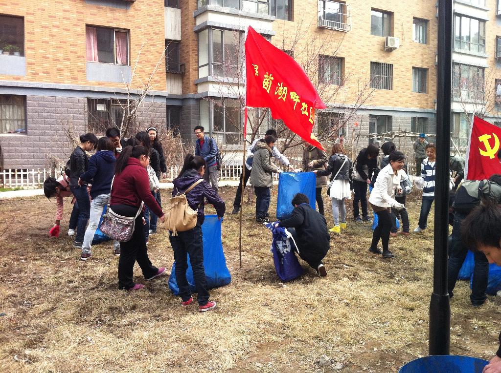 上午九点,员工党支部一行30人来到绿茵湖畔社区。社区服务活动的主要内容为帮助社区清理小区绿地上及其周边垃圾。在整个活动过程中,每位党员都发扬不怕脏不怕累的精神,积极为小区草坪进行“美容”,清除了大量生活垃圾。由于分工明确,在全体员工党员的共同努力下,社区的卫生环境得到了一定程度的改善。