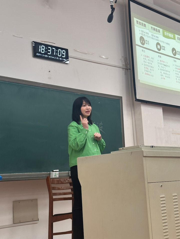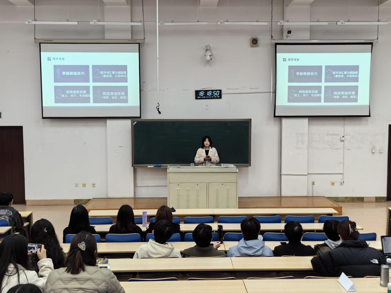 张嘉扬同学介绍了申研过程中各类语言考试的特点及文书撰写中需要包含的要点,令同学们对申研有了更全面的了解。