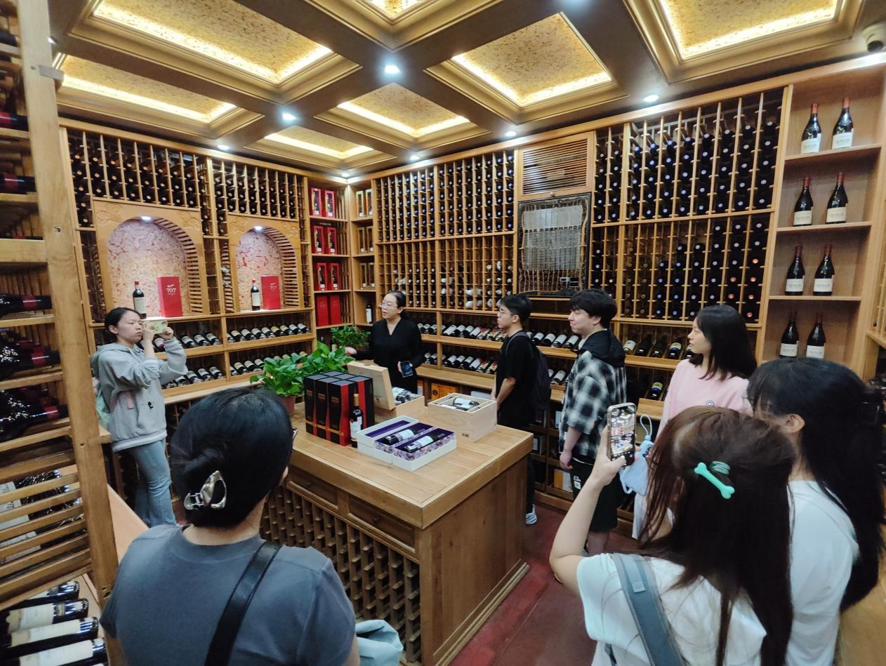 调研过程中,沈阳糖酒曲丹莉书记亲自接待了师生一行,并详细介绍了公司的发展历程和业务布局。在参观公司酒类展览室时,曲书记展示了公司的丰富酒类产品,这些展品不仅数量众多、品类齐全,而且融入了浓厚的中华文化元素。尤其是茅台系列产品,以其独特的酿造工艺和文化内涵著称,吸引了师生们的广泛兴趣。此外,公司还珍藏了12生肖系列异形酒,这些造型别致的酒品,不仅体现了企业对传统文化的传承和创新,也展现了其在产品设计方面的独到见解。