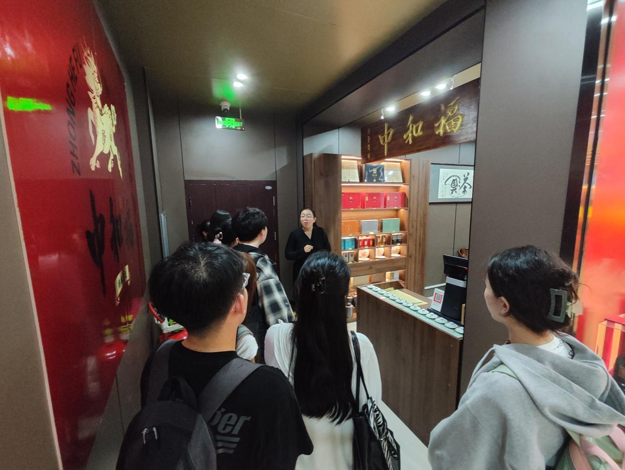 随后,曲书记带领大家体验了公司茶室,介绍了中和福茶这一中华老字号品牌的历史和文化价值。中和福茶作为帅府的特供茶,有着深厚的历史渊源,是中国茶文化的重要代表。通过对茶文化的详细解读,师生们更深入了解了沈阳糖酒在传承和发扬中华文化方面所做的努力。