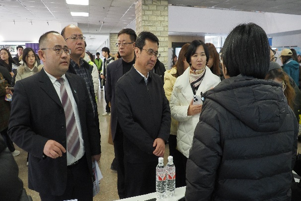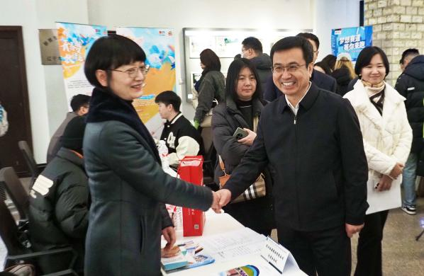 伟德官网bv1946党委副书记张洪新到招聘现场指导工作,与用人单位、师生亲切交流。校员工就业指导中心主任赖博熙以及相关学院的书记、经理也来到招聘会现场,与企业充分沟通,积极推荐优秀毕业生。